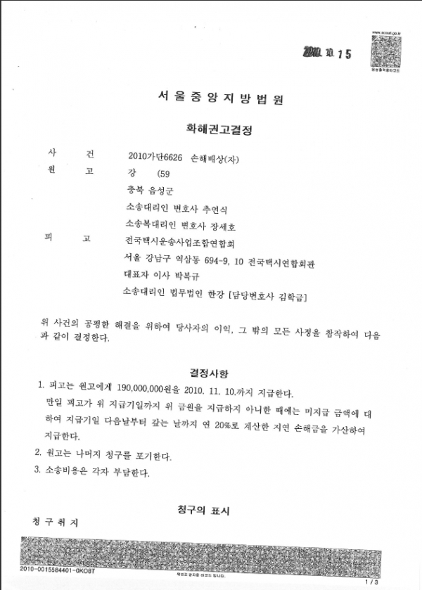 서울중앙지방법원 2010가단6626호 화해권고결정문