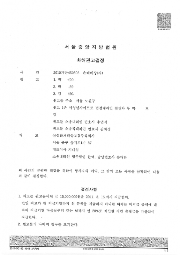 서울중앙지방법원 2010가단450506호 화해권고결정문