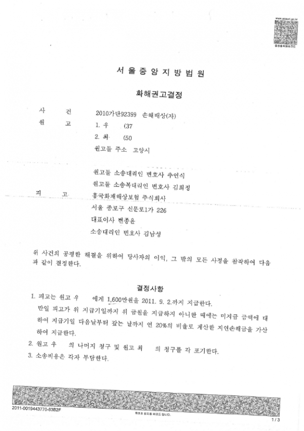 서울중앙지방법원 2010가단92399호 화해권고결정문