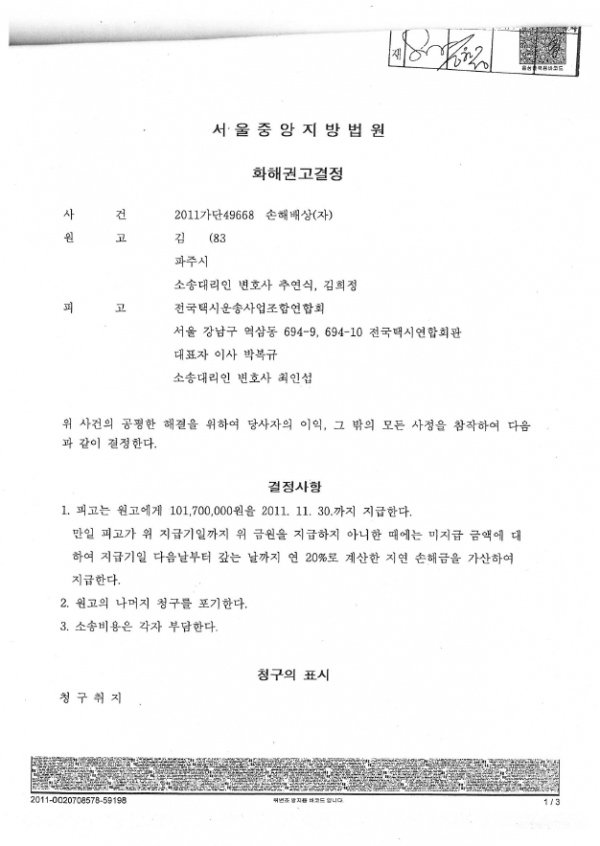 서울중앙지방법원 2011가단49668호 화해권고결정문
