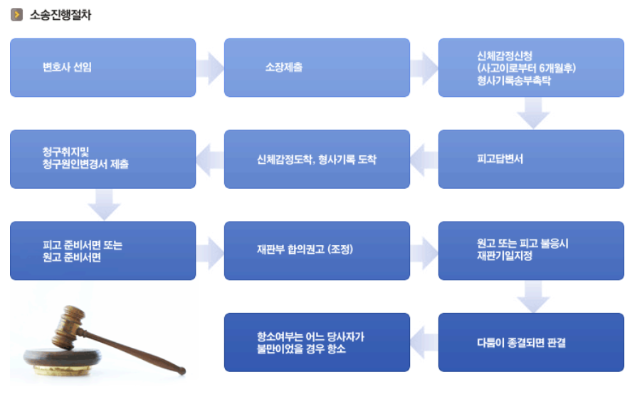 중상해나 사고 후유증이 심각한 경우 보험사와 합의가 되지 아니하면 소송을 통하여 손해배상을 받게 됩니다.