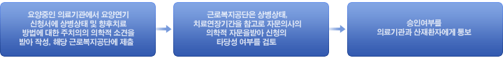 업무상 질병 또는 재해로 치료종결 후 계속치료가 필요한 경우 치료기간을 연장하고자 할 때 신청합니다.